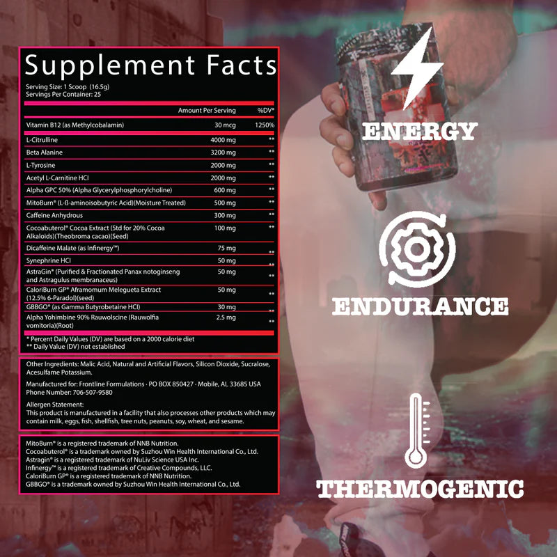 - Fat-Burning Power: Thermogenic ingredients like Mitoburn, CaloriBurn®, and Alpha Yohimbine to torch fat.